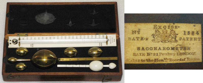 A Bate saccharometer, manufactured by R.B. Bate. As with the Sikes’ hydrometers, Bate licensed production of his saccharometer to other manufacturers throughout the country. Adapted for nonprofit, educational purposes from http://collectionsonline.nmsi.ac.uk.