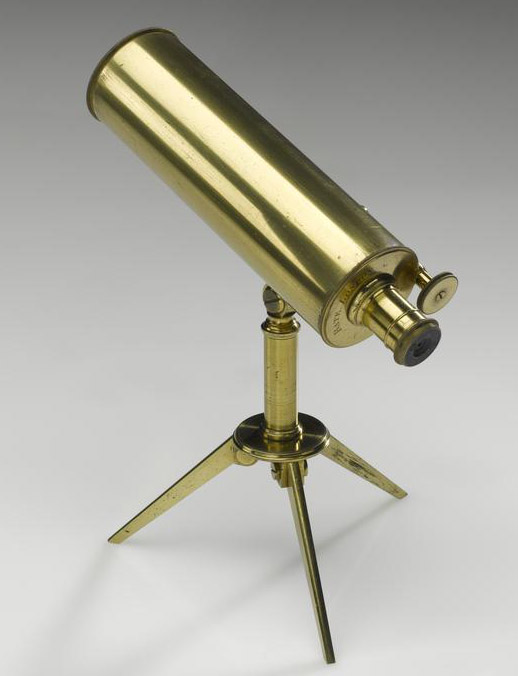 Gregorian reflecting telescope with 2 1/2 inch aperture and 8 inch focal length, by Bate. Adapted for nonprofit, educational purposes from http://collection.sciencemuseum.org.uk/objects/co56637/gregorian-reflecting-telescope-of-2-12-inch-apert-telescope-gregorian-telescope-reflecting.