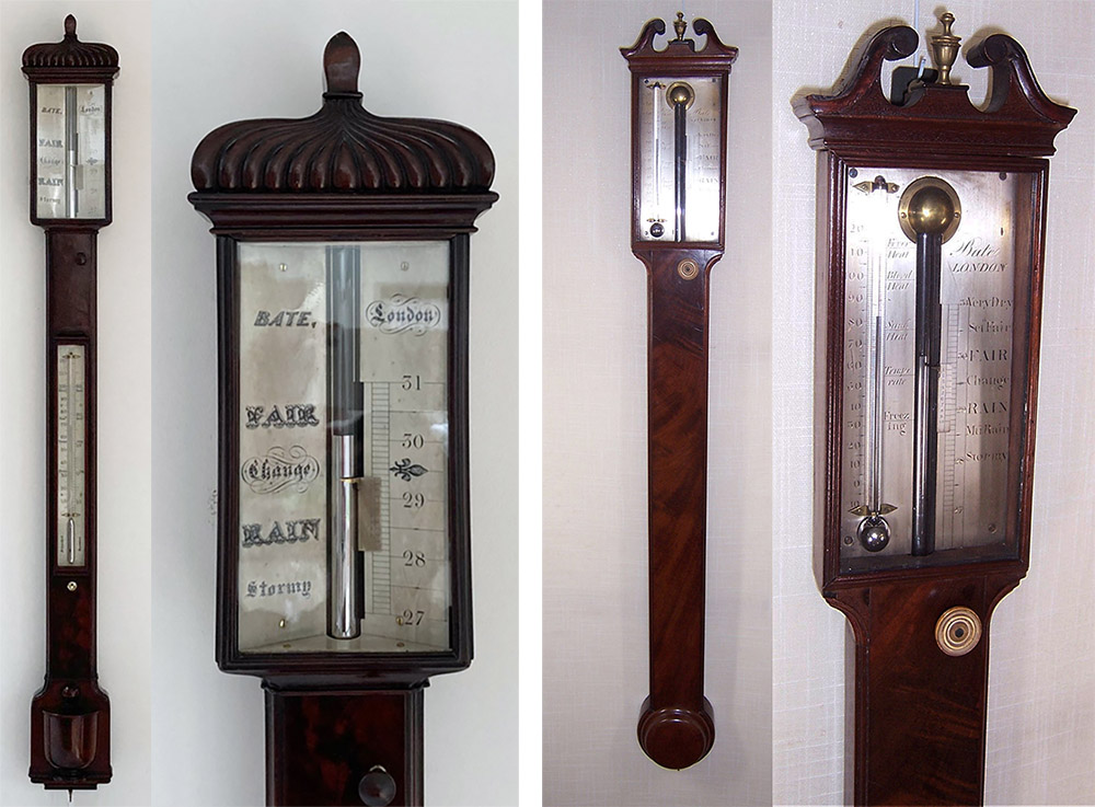 Two barometers by Bate. Adapted for nonprofit, educational purposes from internet sale sites.