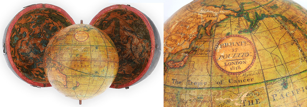 Pocket globe by Bate, dated 1818. Adapted for nonprofit, educational purposes from an internet auction site.