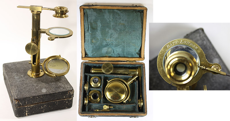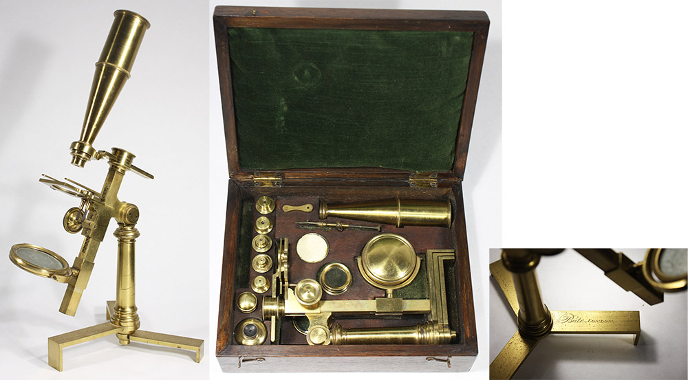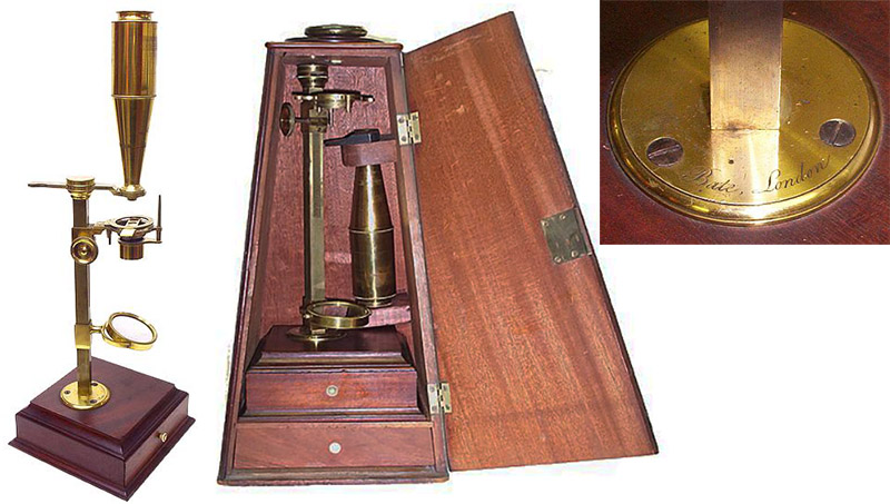 Following are examples of microscopes that were produced by and/or sold by Robert Bate, his biography, then examples of other items from Bate.