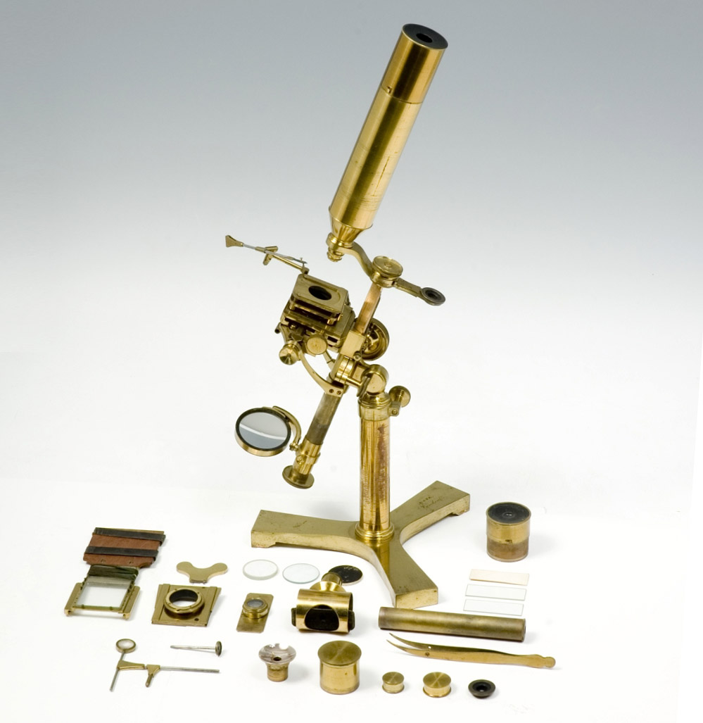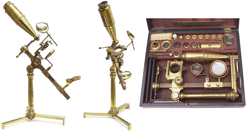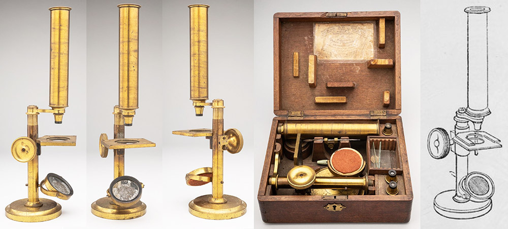 A “Jones’ Improved” pattern compound microscope, by Bate. Adapted with permission from http://www.antique-microscopes.com/photos/most_improved.htm.