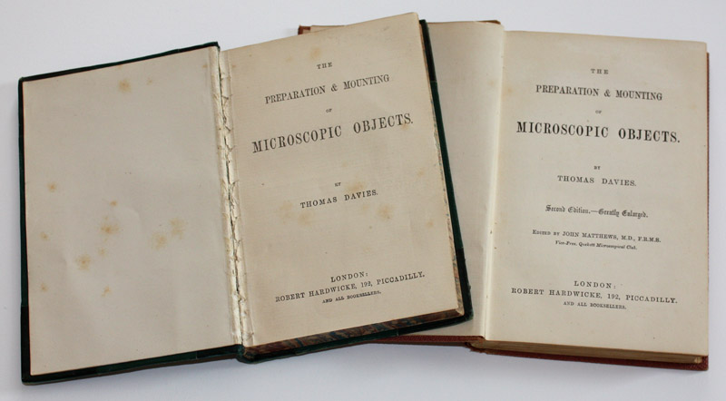 Davies, Thomas, and John Matthews (1873) The Preparation and Mounting of Microscopic Objects, Second Edition, Hardwicke and Bogue, London