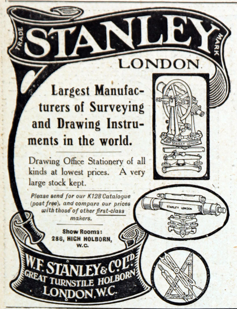 1912 advertisement. Adapted from http://www.gracesguide.co.uk/W._F._Stanley_and_Co