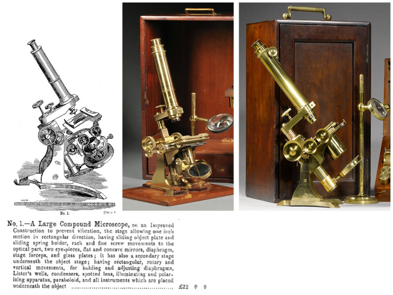 described in the catalog as accompanying model No. 11. Unsigned microscopes of