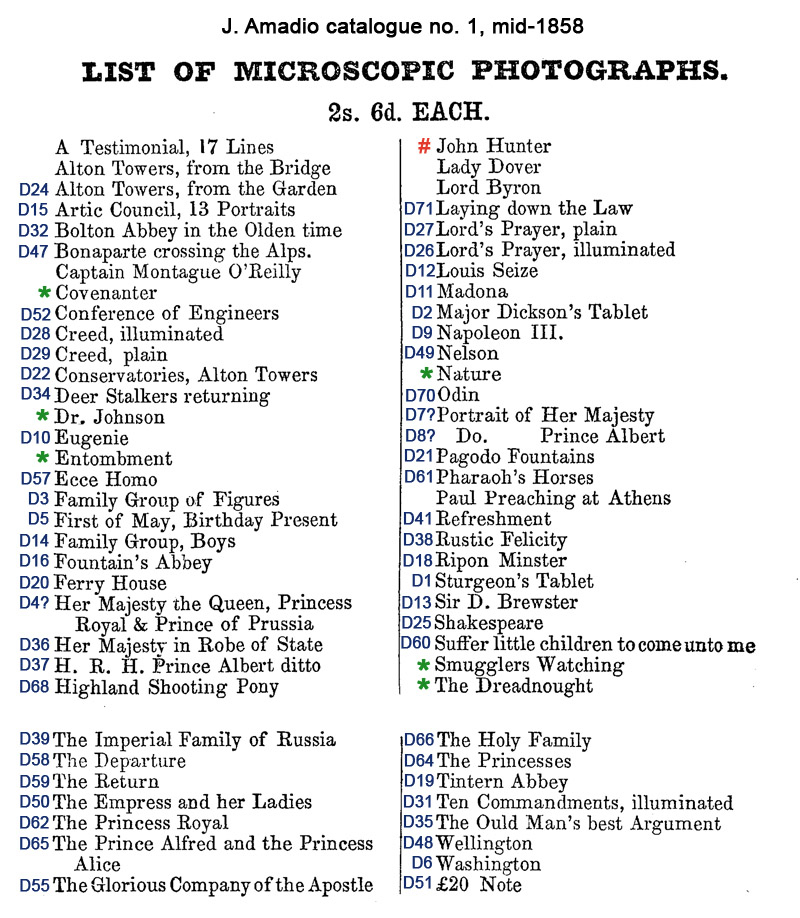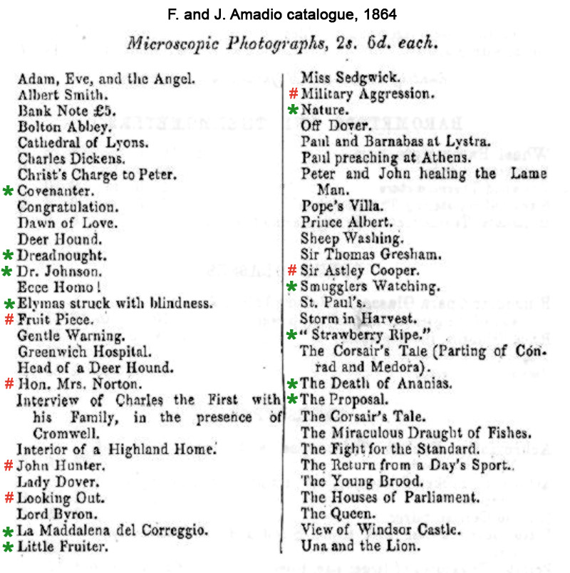1864 catalog. Some may have been supplied by Dancer, although titles that match those of Dancer’s lists of microphotographs were also produced by other photographers. William