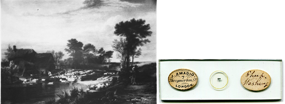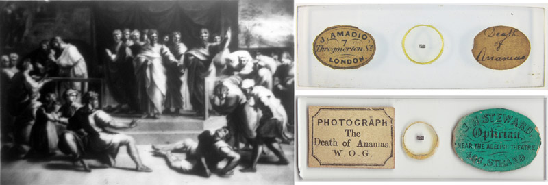 “Death of Ananias”, microphotograph produced by W.O. Geller. This slide was described in Amadio’s 1864 catalog.