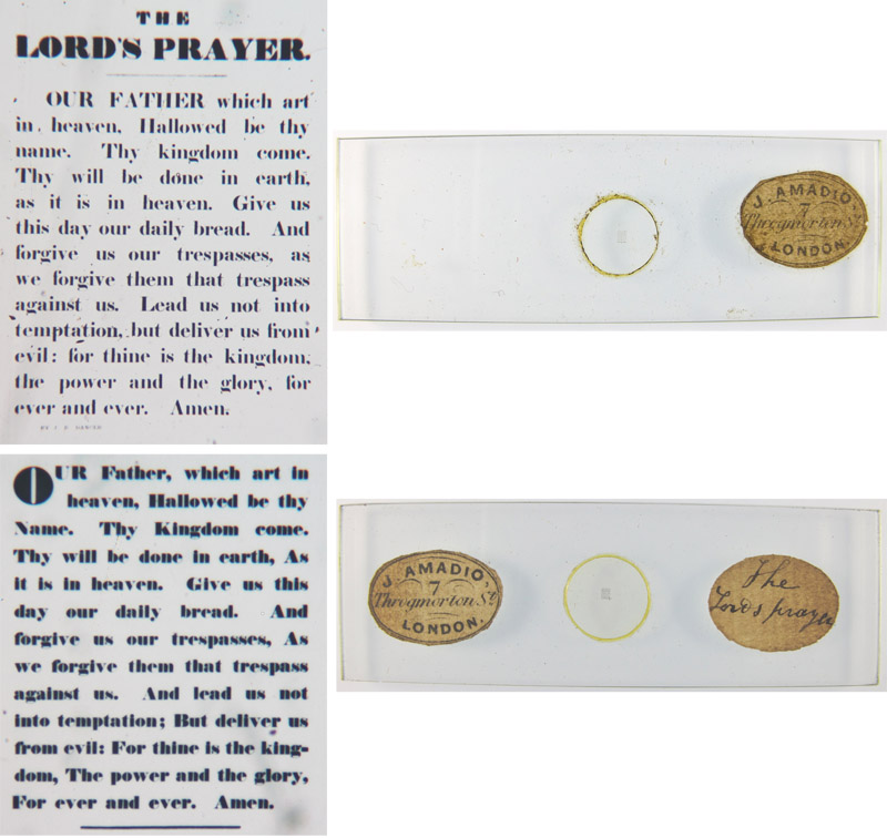 Microphotograph slides offered by Amadio in 1858.