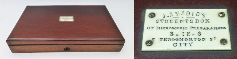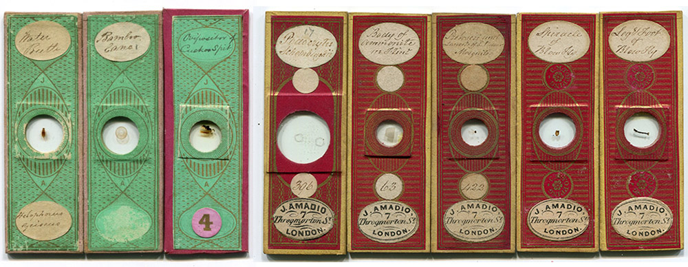 Some microscope slides retailed by Amadio. The