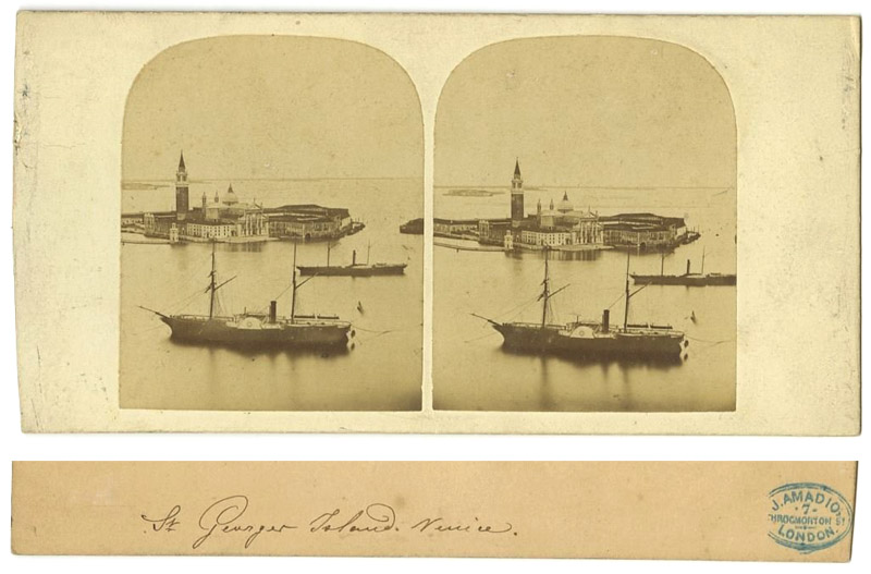 A paper stereoview of Georges Island, Venice,