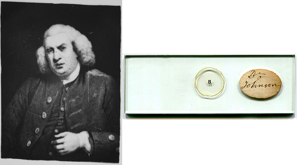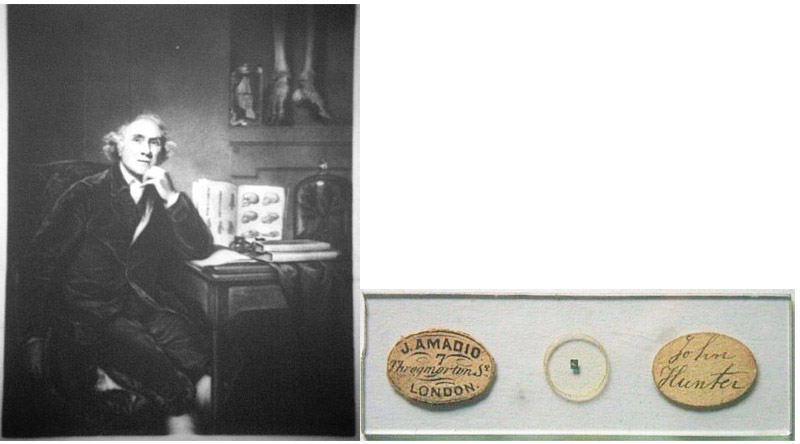 William O. Geller (“W.O.G.”). A seventh slide, “John Hunter”, marked with a red #, was of an engraving by Geller, who probably also made the microphotograph. The