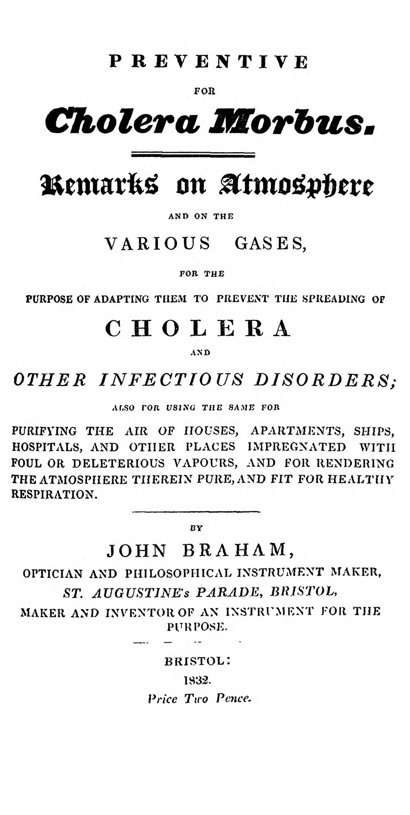 Braham, John (1832) Preventive for Cholera Morbus, Braham, Bristol
