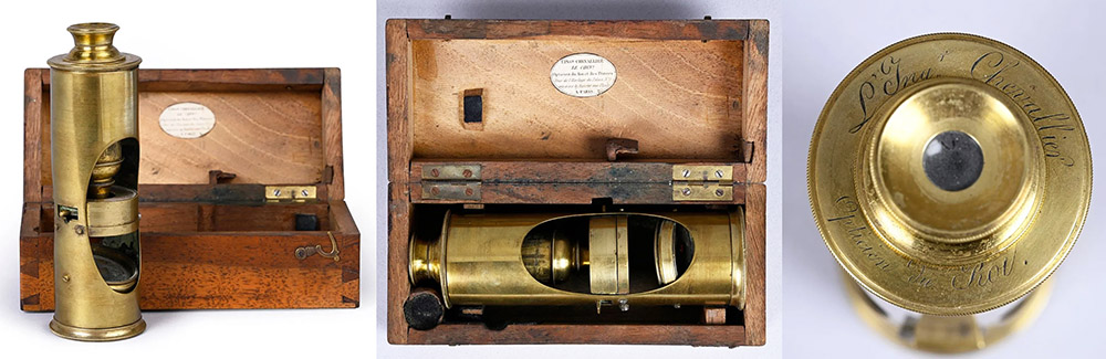Drum-style compound microscope from Maison de l’Ingéneur Chevallier. Adapted with permission from http://www.lecompendium.com/dossier_optique_196_microscope_a_niche_maison_chevallier/microscope_a_niche_ingr_chevallier.htm.