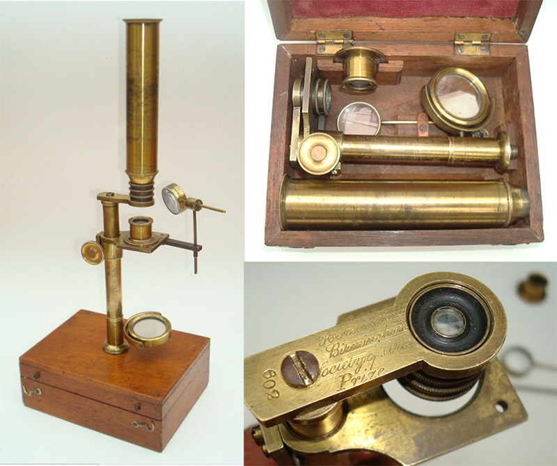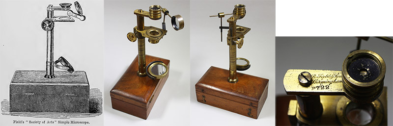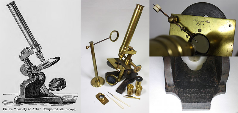The pattern of Field’s prize-winning compound microscope became immensely popular, and was widely known as the “Society of Arts” pattern, regardless of the manufacturer: