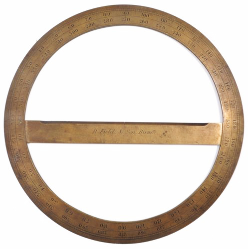 A protractor by R. Field and Son. Adapted for nonprofit, educational purposes from an internet auction site.
