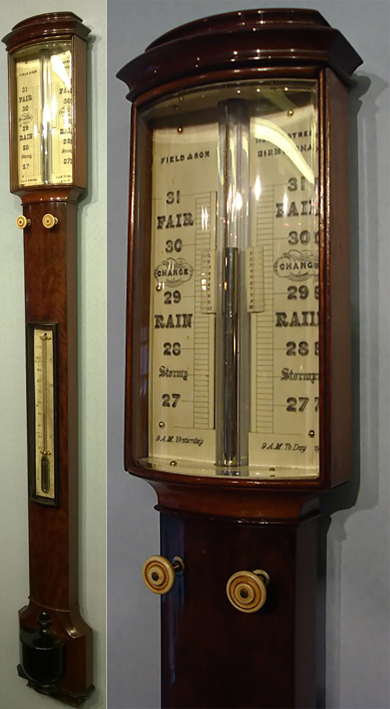 An R. Field and Son barometer. Adapted for nonprofit, educational purposes from an internet auction site.