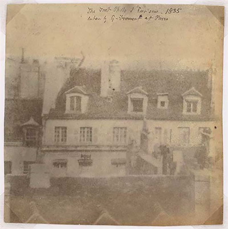 An 1835 photograph that is attributed to Froment. Adapted for nonprofit, educational purposes from an image available from the National Library of Scotland, https://www.nls.uk/collections/photographs/paris-rooftops .