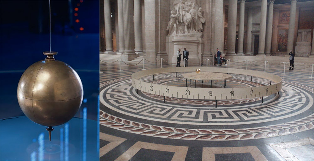 (Right) A replica of the Foucault-Froment pendulum, in the Panthéon.