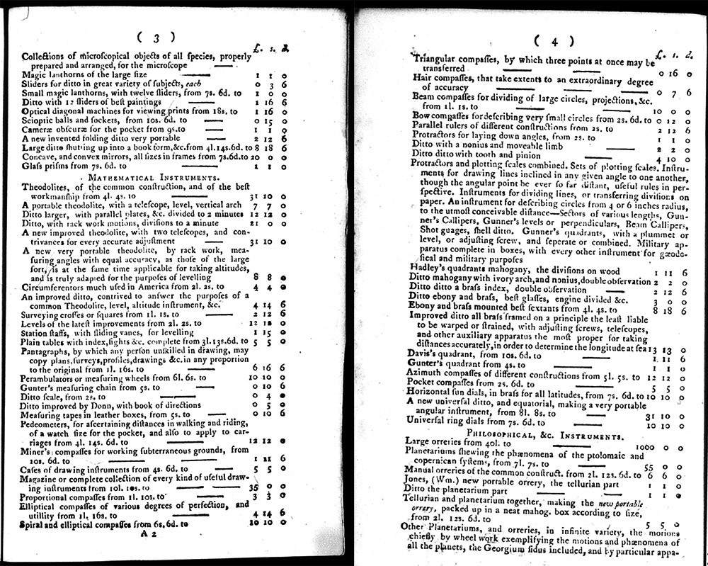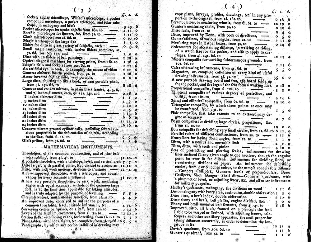 Jones, William, and Samuel Jones (1791) A Catalogue of Optical, Mathematical, and Philosophical Instruments, Made and Sold by Willm. and Saml. Jones, at Their shop, No. 135, Next Furnival's Inn, Holborn, London