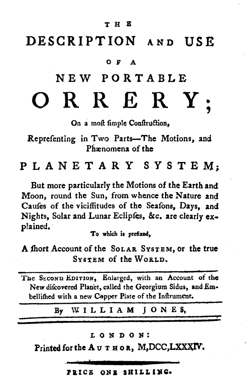 Jones, William (1799) The Description and Use of a New Portable Orrery, W. & S. Jones, London