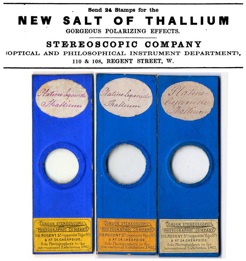 Hardwicke’s Science-Gossip (1868) Advertisement for microscope slides of thallium platinocyanide