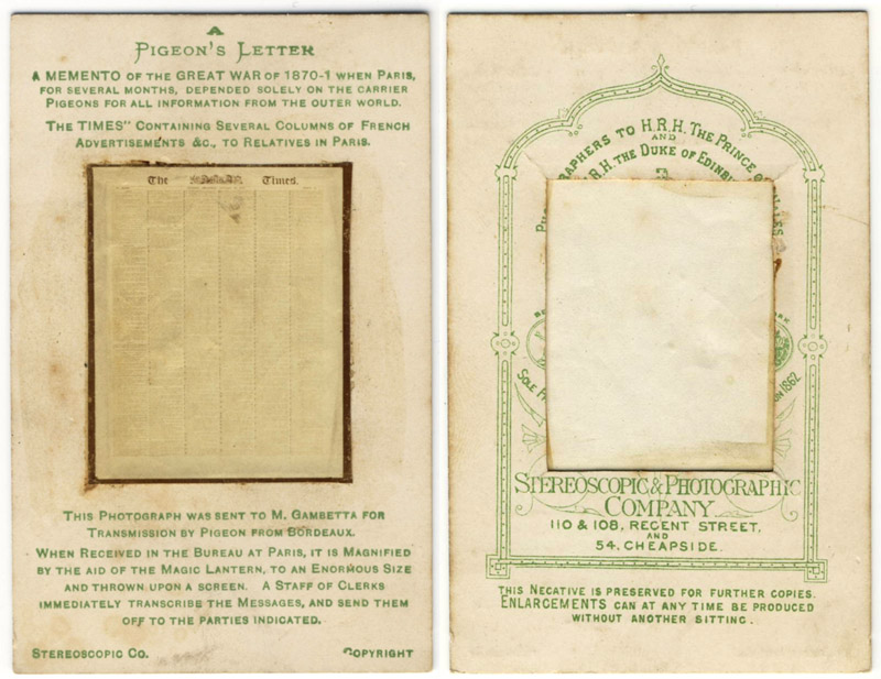 “pigeon post” microfilm, purportedly from the siege of Paris during the