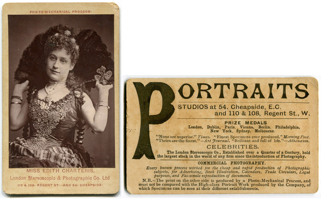 Celebrity CDV of actress Edith Charteris. The