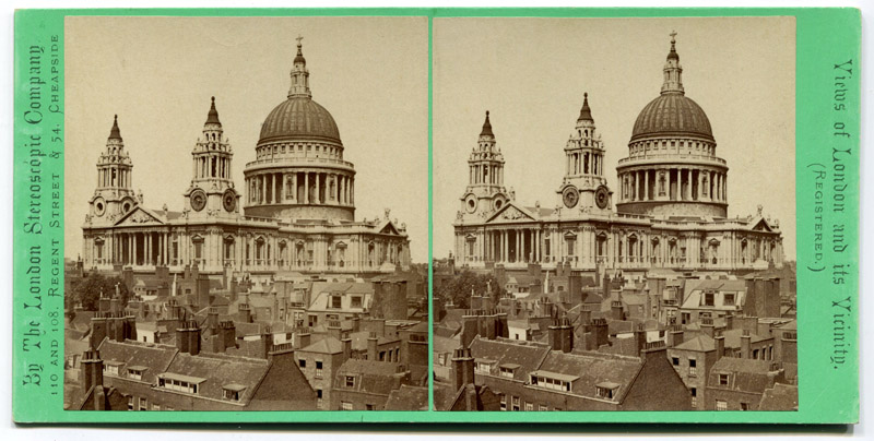 Stereoview of Saint Paul’s Cathedral, over the rooftops of London.