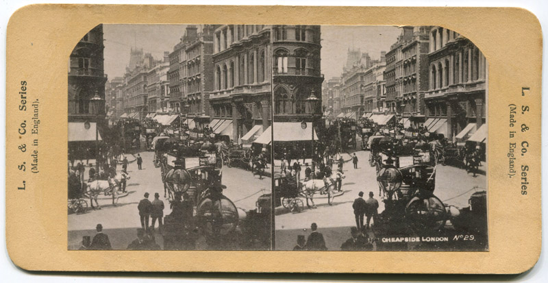 Stereoview of Cheapside, dated 1907 in pencil on the reverse.