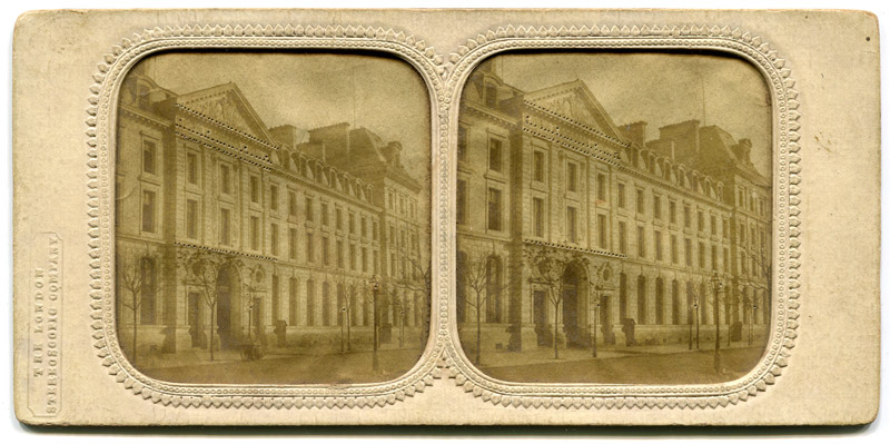 Nottage opened a shop at 313 Oxford Road, London in 1854, to sell iron bronzes from Kennard’s foundry. Nottage placed some continental paper stereoviews in the window, which sold so well that they replaced the bronzework as focus of the shop. As it developed through the years, the business was variously known as The Repository of Art, The London Stereoscope Company, Stereoscopic Corporation, and the London Stereoscopic & Photographic Company.