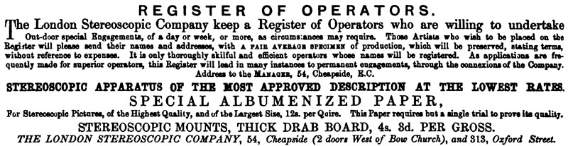 THE LONDON STEREOSCOPIC COMPANY, 54, Cheapside (2 doors from Bow Church),