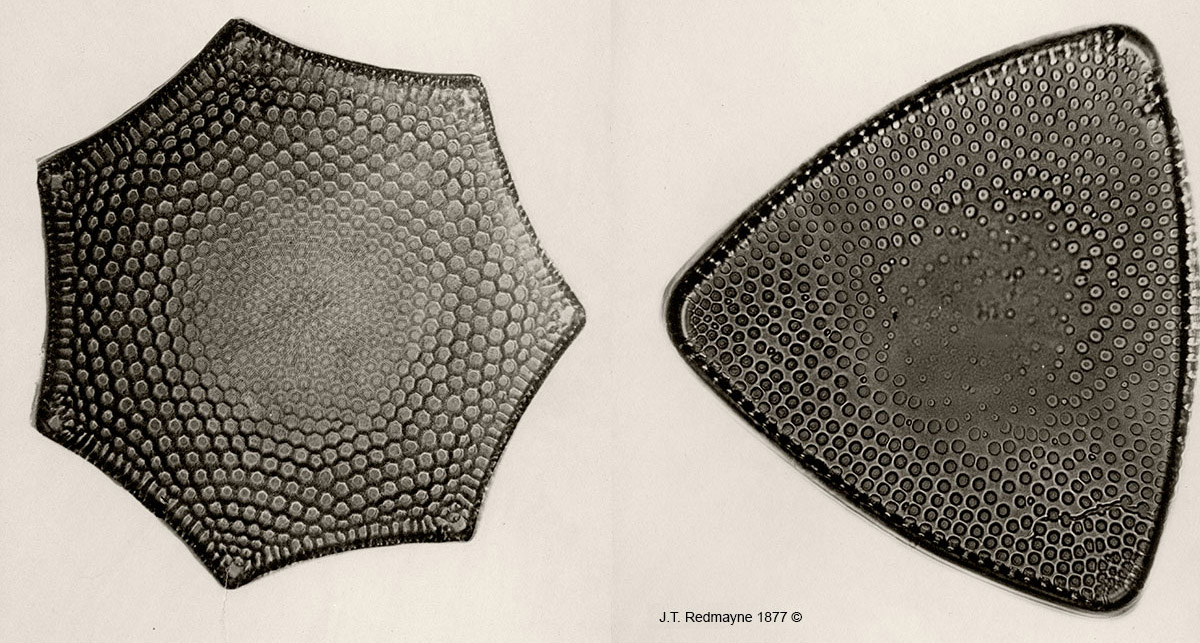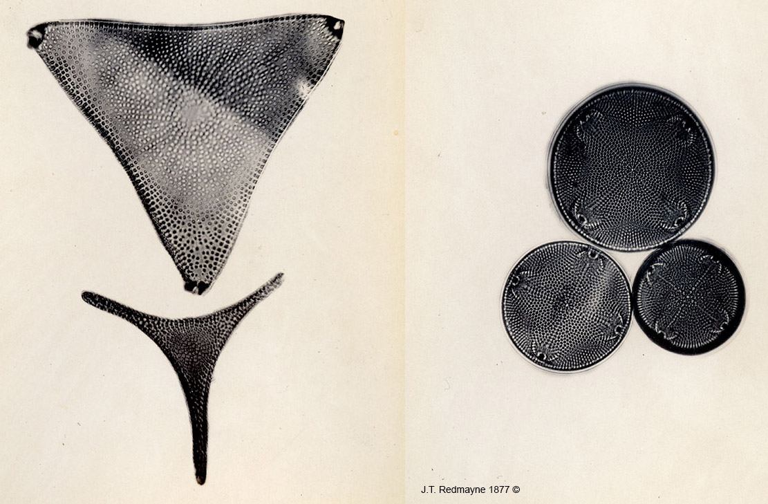 Berdan, Robert (accessed 2017) Photomicrographs of Diatoms from 1877 by John T. Redmayne, http://www.canadiannaturephotographer.com/Redmayne_diatoms.html.