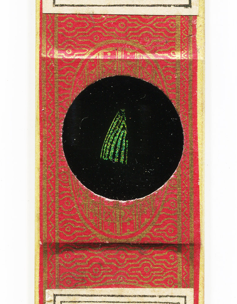 Amos Topping regularly used a gold-on-red patterned paper for the tops of his slides. I have not seen it used by other slide-makers, suggesting that Topping had it custom-printed.