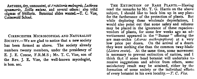 Vize, T.C. (1881) The extinction of rare plants, Hardwicke’s Science-Gossip, Vol. 17, page 260