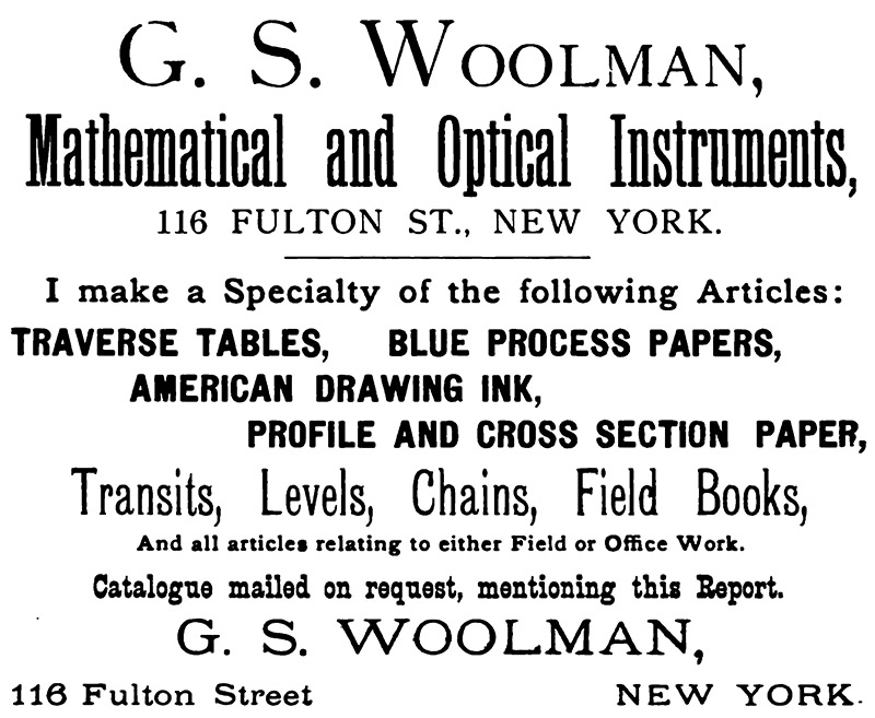 Tenth Annual Report of the Ohio Society of Surveyors and Civil Engineers (1889) Advertisement from G.S. Woolman, page X