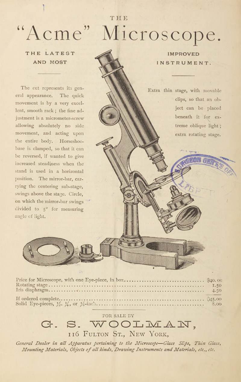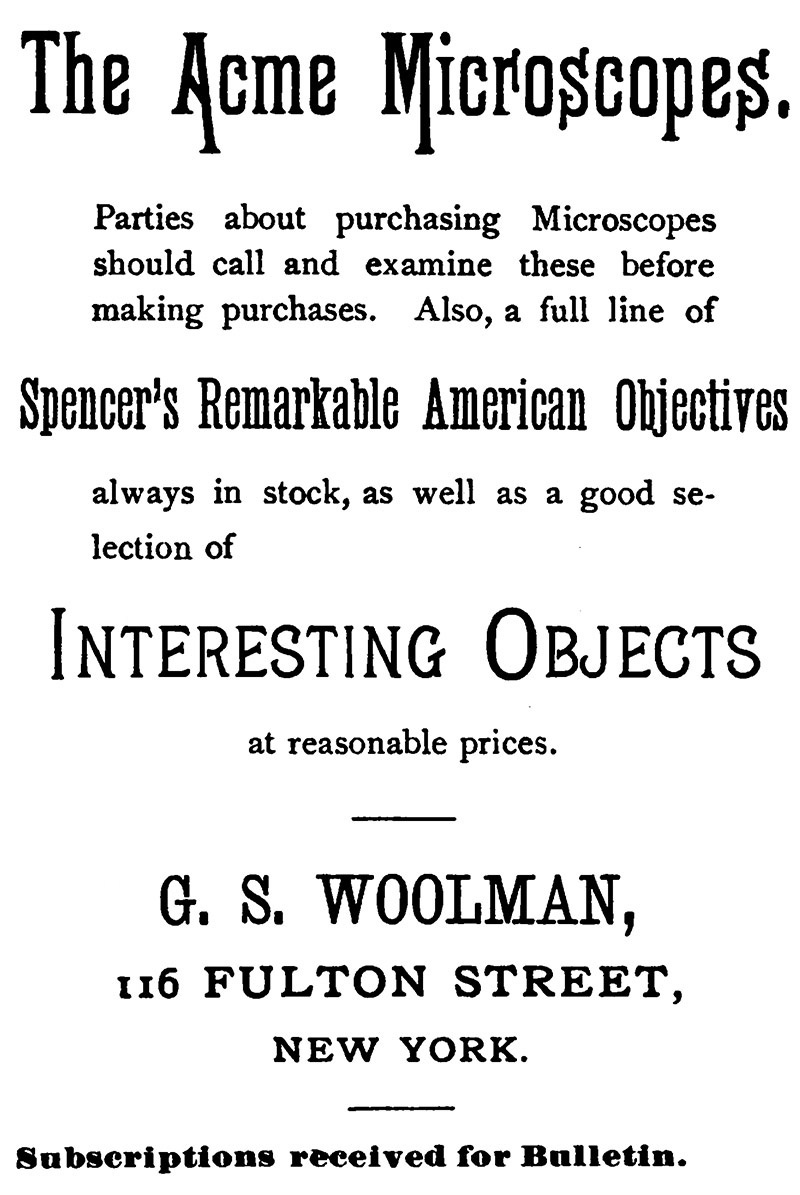 Journal of the New York Microscopical Society (1891) Advertisement from G.S. Woolman
