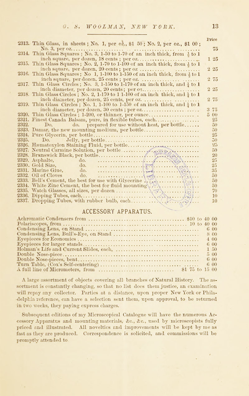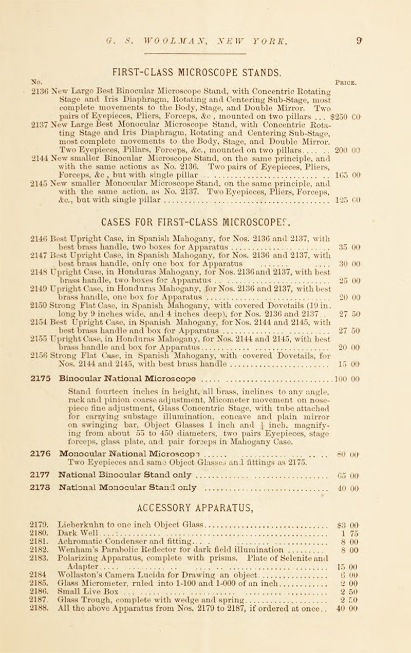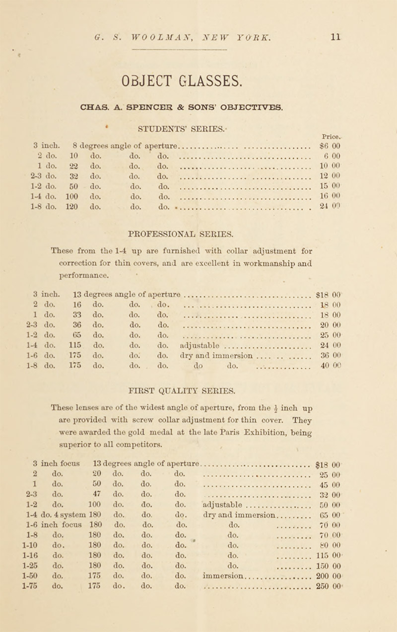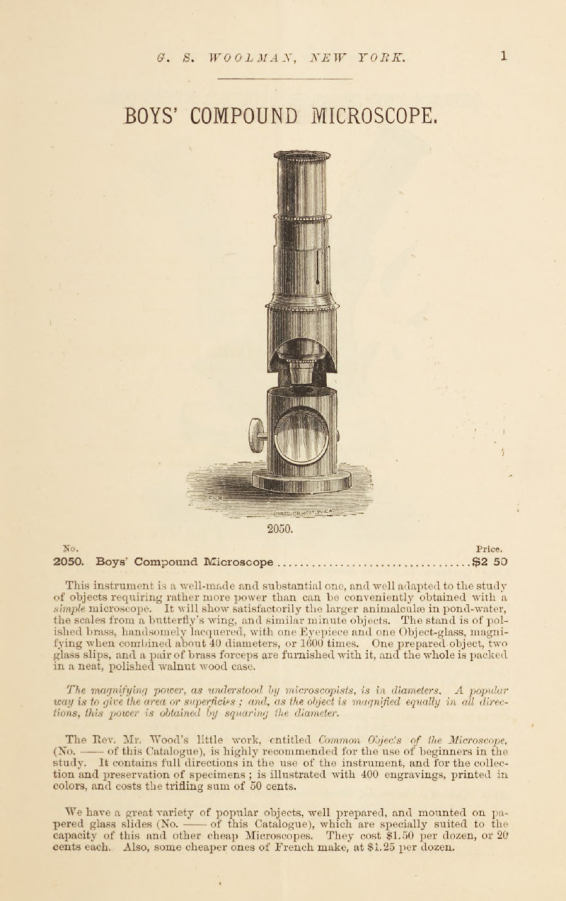 Woolman, G.S. (1879) Priced and Illustrated Catalogue of Microscopes and Optical Instruments
